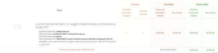 Potrivit datelor din SEAP, valoarea acestui contract se ridică la suma de 20.281 lei, aproximativ 4.100 de euro. Într-un răspuns pentru GÂNDUL.RO, reprezentanții Linde Gaz România au precizat că „TIR-urile ATI au instalații proprii de distribuție a oxigenului medical la interior, dotate cu un panou pentru reglarea presiunii”, menționând că acestea nu au fost furnizate sau instalate de compania Linde.