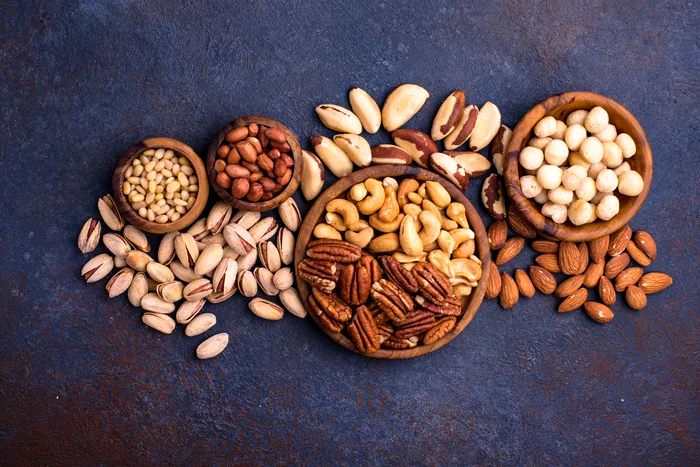 Fructele oleaginoase: alunele, arahidele, nucile, migdalele, semințele de floarea soarelui, semințele de dovleac, conțin aproximativ 20 de grame de proteine la 100 de grame și reprezintă o altă opțiune sănătoasă. Sunt foarte gustoase și pot fi consumate ca gustare, sau adăugate în salate.