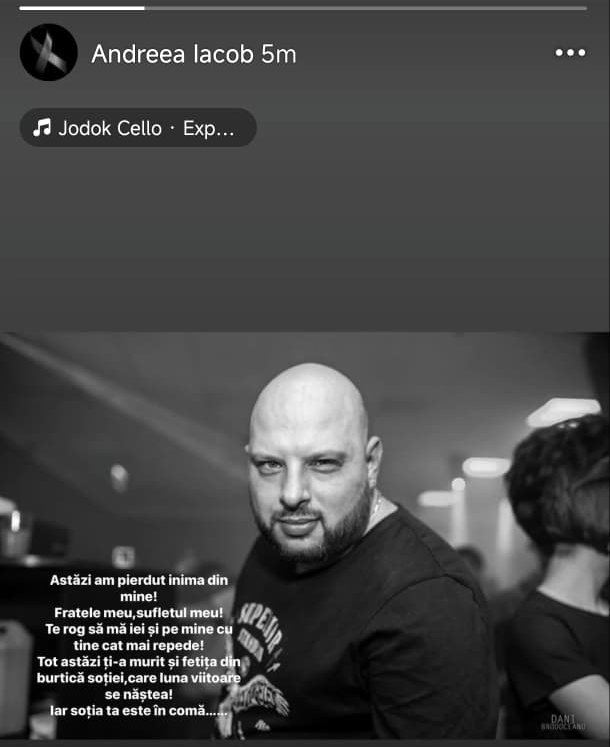 „Astăzi am pierdut inima din mine. Fratele meu, sufletul meu! Te rog să mă iei și pe mine cu tine cât mai repede! Tot azi ți-a murit și fetița din burtica soției, care luna viitoare se năștea! Iar soția ta este în comă…”, a transmis Andreea Iacob pe rețelele de socializare.