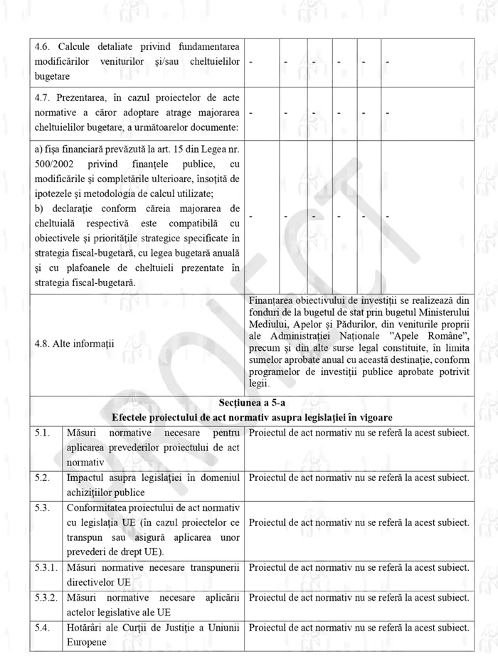 Potrivit documentului înaintat de Diana Buzoianu spre aprobarea premierului Bolojan, finanțarea obiectivului de investiții se realizează din fonduri de la bugetul de stat prin bugetul Ministerului Mediului, Apelor și Pădurilor, din veniturile proprii ale Administrației Naționale ”Apele Române“, precum și din alte surse legal constituite.