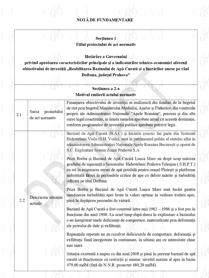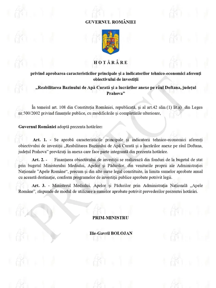 Ministerul Mediului a supus Executivului spre aprobare obiectivul de investiții „Reabilitarea Bazinului de Apă Curată și a lucrărilor anexe pe râul Doftana, județul Prahova”. Este vorba de Bazinul de Apă Curată de la Voila, complex din care face parte și Barajul Paltinu, a cărui defecțiune a lăsat fără apă curentă 130.000 de oameni. Gândul a intrat în posesia acestui document.