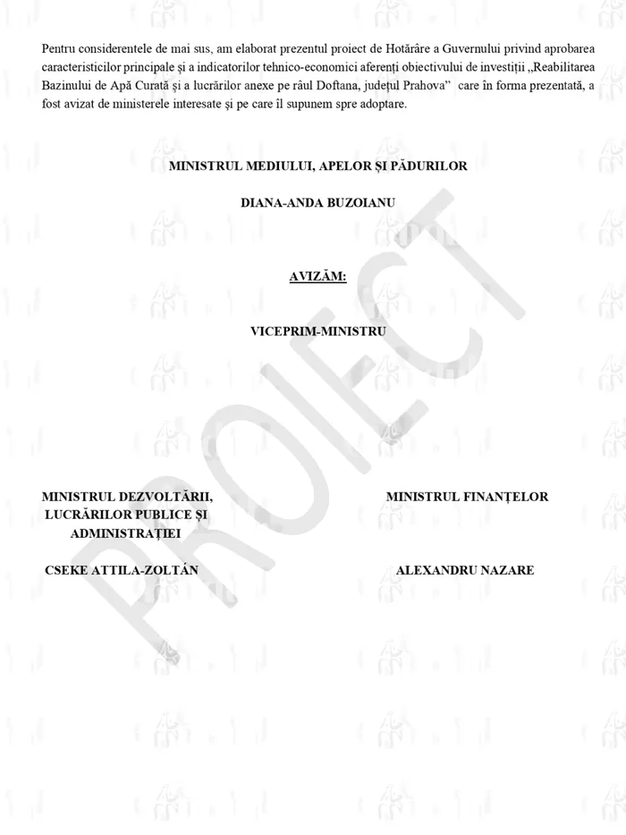 Interministerial de Avizare Lucrări Publice de Interes Național și Locuințe nr. 55 din 9.12.2025 și al ministerelor interesate, se mai arată în documentul semnat de Ministrul Mediului, Apelor și Pădurilor.