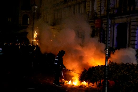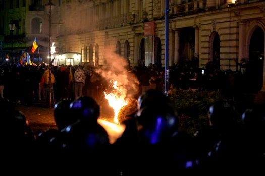 „Subliniem faptul că este regretabil și îngrijorător modul în care unele persoane au înțeles să își exercite dreptul la liberă exprimare și au decis să provoace asemenea violențe, totodată distrugând și o parte a mediului ambiant din Centrul Istoric al Capitalei: geamuri ale unor societăți comerciale, distrugere mobilier stradal și pavaj pietonal, incendiere pubele de gunoi”, adaugă DGJMB.