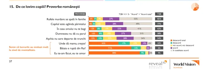 Conform raportului, peste jumătate dintre părinţi cred că lovirea este pentru binele copilului şi 1 din 10 cred că lovirea apare din cauza copilului. Raportul complet poate fi citit aici