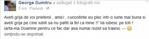 La scurt timp după ce și-a anunțat intenția de sinucidere pe Facebook, Dumitru a intrat cu o viteză extrem de mare într-un BMW în care se aflau 5 persone, trei adulți și doi copii, din Câmpina, care veneau de la pescuit. Toate cele cinci persoane au fost ucise atunci de tânărul sinucigaș care suferea din dragoste, după ce fusese părăsit de iubită.