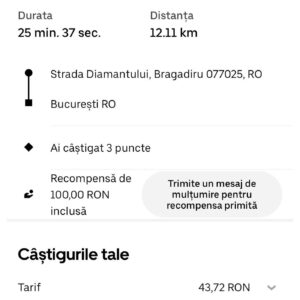Un șofer care a avut o cursă din Bragadiru până în București a fost mai mult decât surprins de bacșișul primit. Cursa a durat în jur de 25 de minute, timp în care a parcurs aproximativ 12 kilometri. La final, șoferul a primit un bacșiș de 100 de lei și a crezut inițial că nu vede bine. Bărbatul a distribuit o fotografie cu suma primită pe rețelele sociale, iar internauții au fost surprinși de generozitatea clientului, lăudându-i gestul.