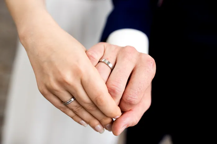 FILED – 16 June 2020, Cologne: A newlywed couple show off their wedding rings after the wedding ceremony. In only 10.3% of German households do women earn more than their male partners, according to figures released by the Federal Statistical Office on Tuesday. Photo: Rolf Vennenbernd/dpa