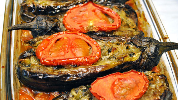 O rețetă de origine otomană, păstrată în Grecia. Vinetele sunt umplute cu ceapă, roșii și ierburi aromatice, apoi coapte în ulei de măsline, rezultând un preparat ușor, parfumat și plin de savoare.
