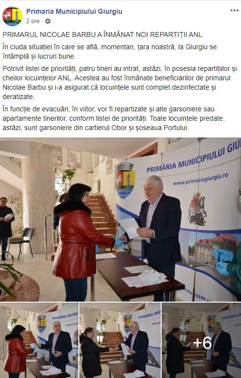 În plină epidemie de coronavirus, Nicolae Barbu, edilul Giurgiului, a chemat la primărie mai multe persoane pentru a le înmâna cheia locuințelor ANL, însă, fără a lua în calcul vreo măsură de protecție.