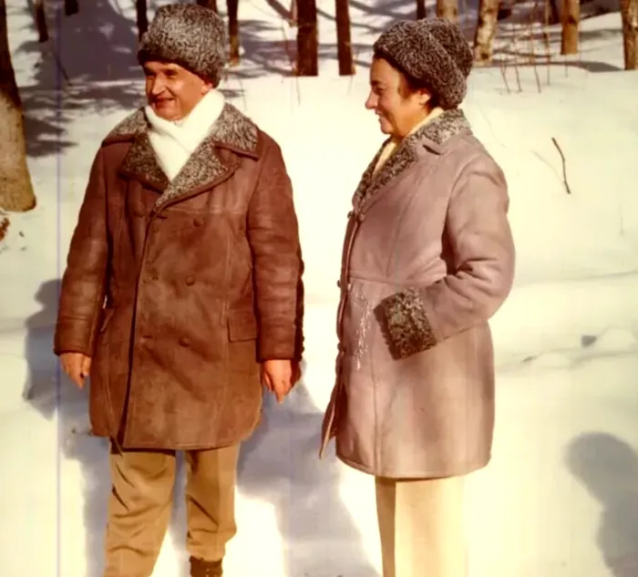 Nicolae și Elena Ceaușescu, într-un decor hibernal