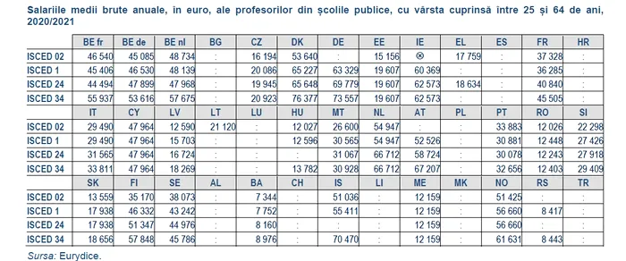 Potrivit celui mai recent raport la nivelul Uniunii Europene privind salarizarea profesorilor și directorilor de școli, elaborat de Agenția Executivă Europeană pentru Educație și Cultură, Eurydice, pentru anul școlar 2020/2021, cadrele didactice din școlile de stat au avut printre cele mai mici venituri din Europa.