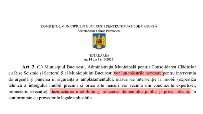 • ISU București Ilfov și DGASPC se vor ocupa de recuperarea bunurilor mobile de strict necesitate aflate în interiorul construcției afectate.