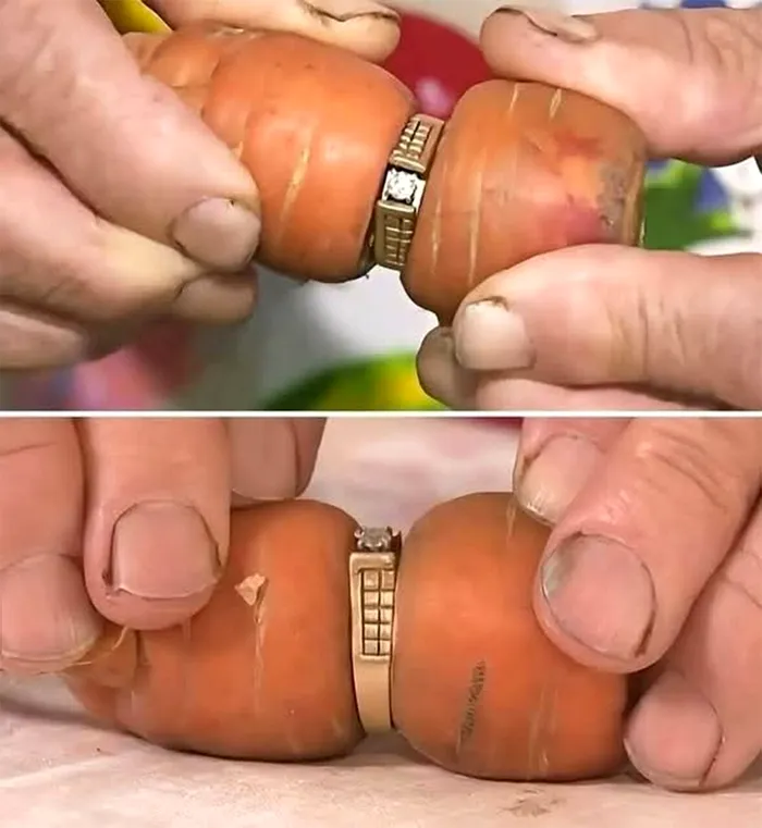 Morcovul crescuse prin inel, strecurându-se perfect prin verigă. Inelul era vizibil de la distanță atunci când a fost descoperit.