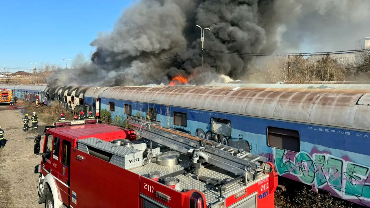 ISU București – Ilfov a anunțat că au fost alertate 7 autospeciale de stingere cu apă și spumă, o autospecială de descarcerare și o ambulanță SMURD, pentru stingerea unui incendiu produs la două vagoane dezafectate, în zona de triaj dintre Gara Basarab si Podul Grant.