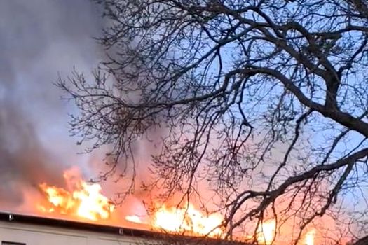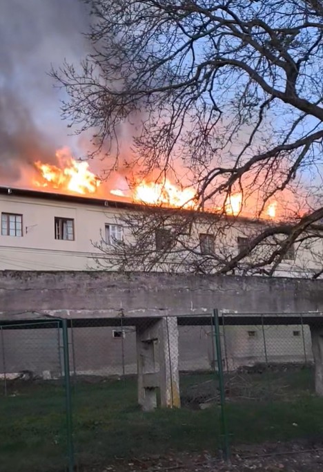 Echipajele operative acționează pentru localizarea și lichidarea incendiului, depunând eforturi pentru limitarea propagării flăcărilor la restul construcțiilor.