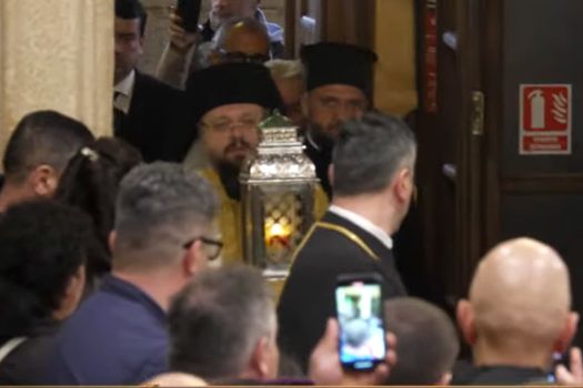 UPDATE: 19:40 Preasfințitul Părinte Paisie Sinaitul a adus Sfânta Lumină la Patriarhia Română.