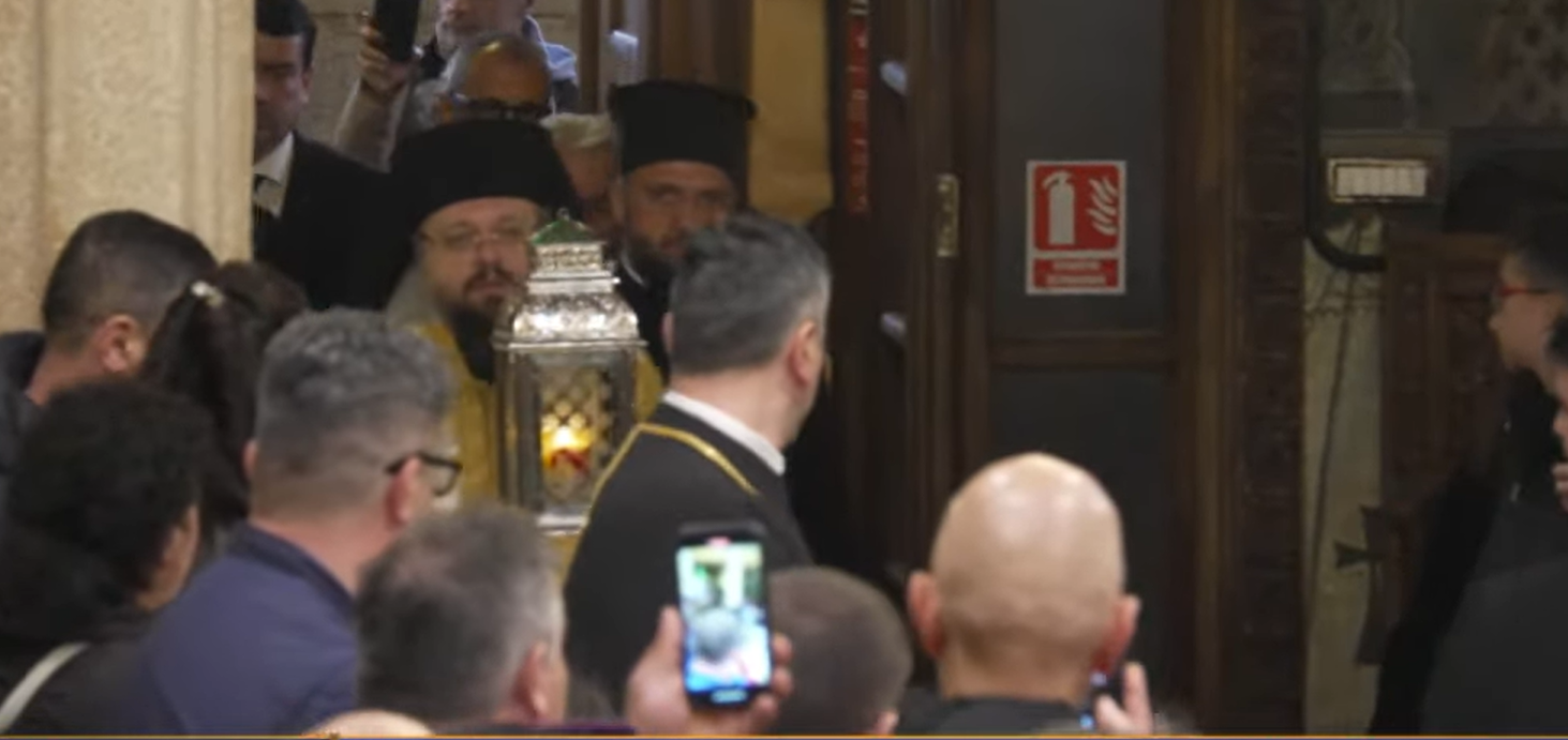UPDATE: 19:06 „În acest an, Sfânta Lumină a fost adusă prin osteneala arhimandritului Meiu Pentru noi, nu este sufiecient să primim această lumină și să o păstrăm pentru noi.