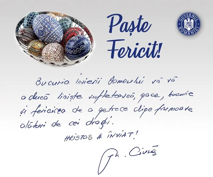 „Bucuria Învierii Domnului să vă aducă liniște sufletească, pace, bucurie și fericirea de a petrece clipe frumoase alături de cei dragi. Hristos a înviat!”, a transmis premierul.