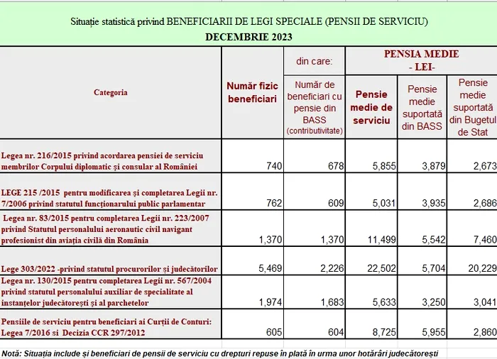 „Aici avem ca temei Legea nr. 282/2023 care a revizuit pensiile de serviciu și le-a apropiat de principiul contributivității. A fost introdusă impozitarea graduală a părții necontributive. Inclusiv pentru pensiile aflate în plată”, se arată în informarea transmisă.