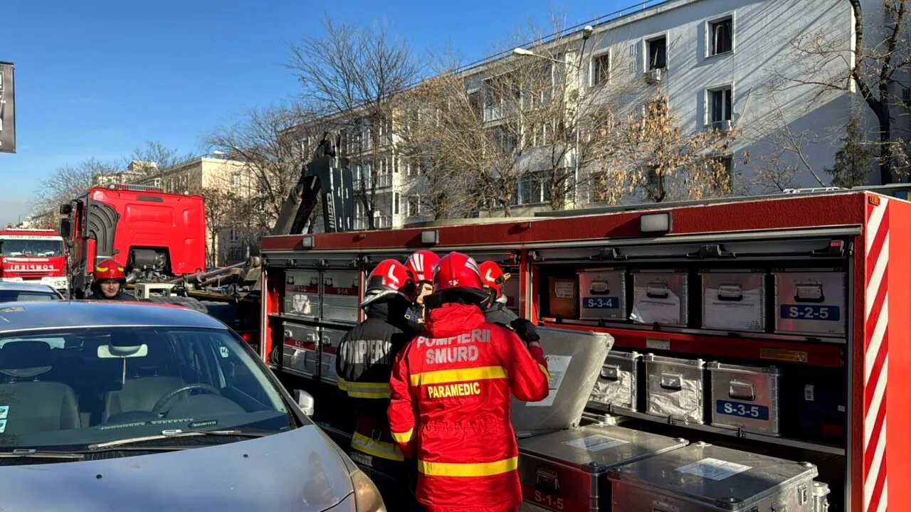 ISU a intervenit în cazul unui incident, de pe Calea Floreasca din Capitală, unde o placă de beton s-a prăbușit pe un șantier din zonă și se presupune că o persoană a rămas prinsă sub dărâmături.