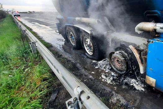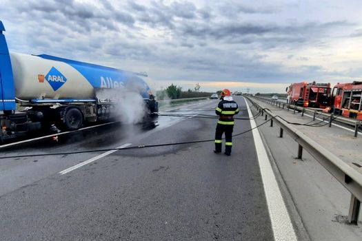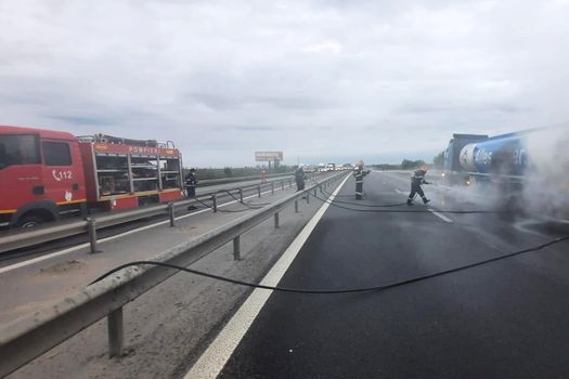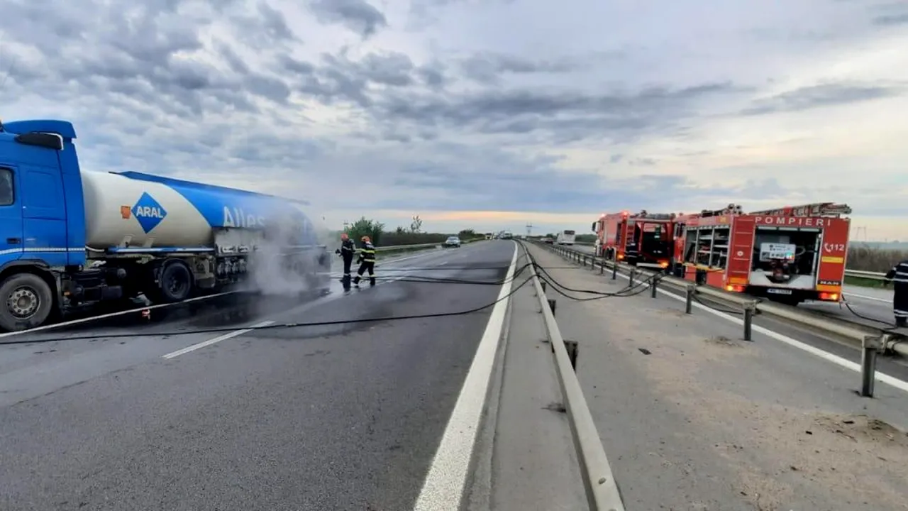 Șoferul a văzut în oglinda laterala flăcările care ieșeau de sub cisternă, a tras pe dreapta și imediat a sunat la 112.