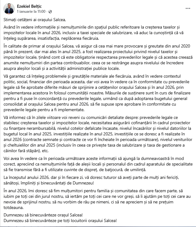 „Vor fi sprijiniţi cetăţenii cu probleme. Va fi o şedinţă cu oamenii, dar nu în stradă, că e frig, ci vom discuta într-o sală, civilizat. Nu este rea-intenţie din partea primăriei”, a spus primarul Ezekiel Belţic.