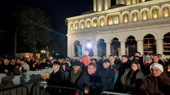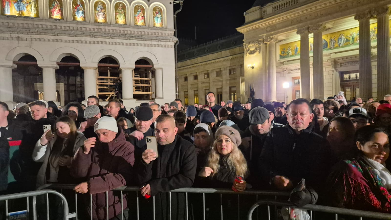 UPDATE 23:50. Curtea Patriarhiei este plină de credincioși, care ascultă cu evlavie rugăciunile rostite de preoți Bisericii Ortodoxe Române.