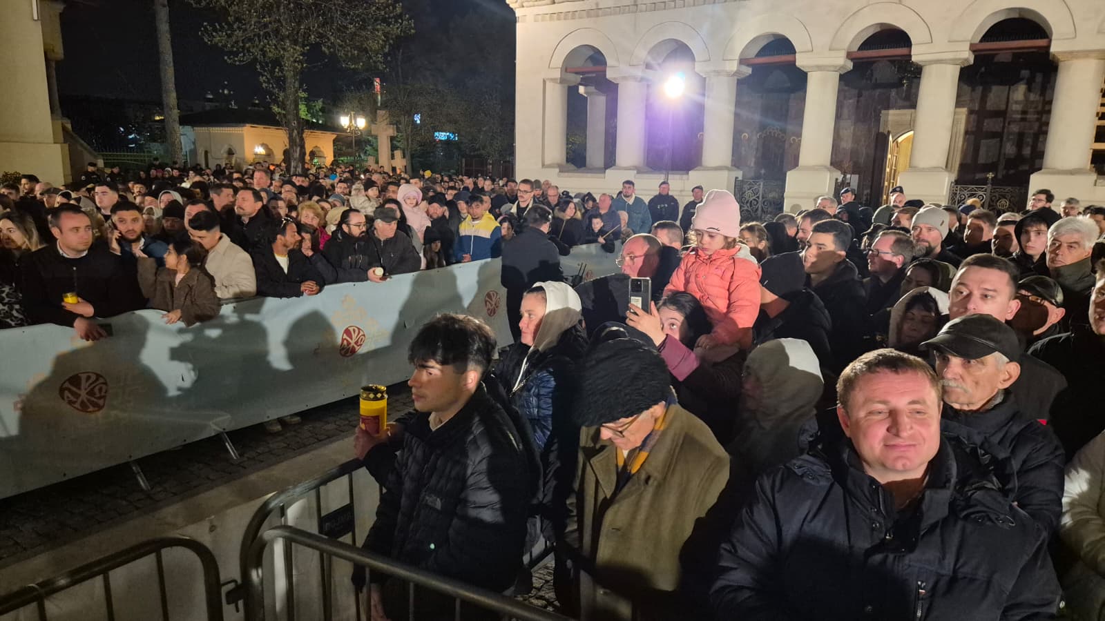 Credincioșii s-au strâns în număr mare încă de la orele 22:00 în fața Patriarhiei.