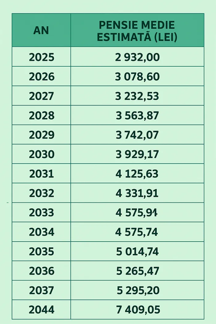 Calculul s-a realizat pornind de la pensia medie actuală în 2025 de 2.932 lei, conform datelor INS, trimestrul II 2025.