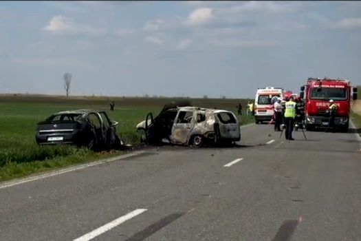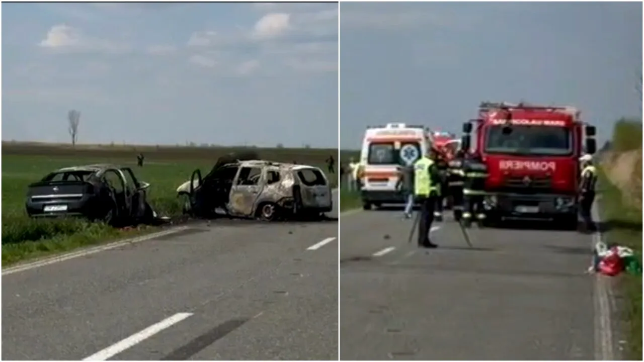 Tragicul accident a avut loc chiar în Sâmbăta Luminată, când două autoturisme s-au ciocnit și apoi au luat foc.
