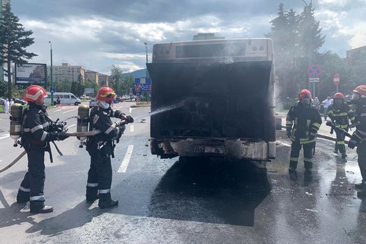 Incendiul a izbucnit la motor, iar autobuzul se afla în zona Gării Brașov, potrivit informațiilor oferite de ISU Brașov.