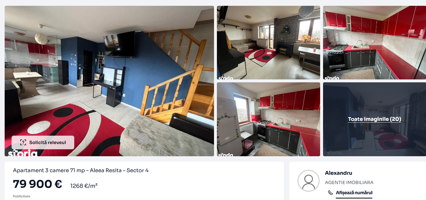 Un apartament cu trei camere, într-o zonă rezidențială din sectorul 4 al Capitalei, costă aproximativ 79.000 de euro, cu 20.000 de euro mai puțin decât cripta din Cimitirul Bellu, potrivit unui anunț pe site-ul unei firme de imobiliare.