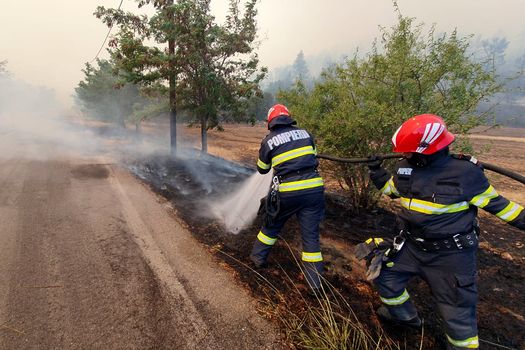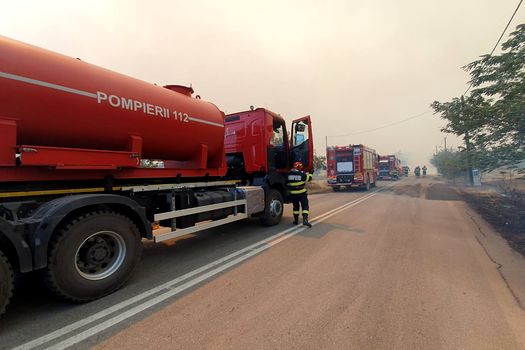 Pompierii români acționează pentru localizarea și lichidarea incendiului, cu opt autospeciale de stingere, patru cisterne cu apă, un container multirisc, drona și autoturisme de teren.