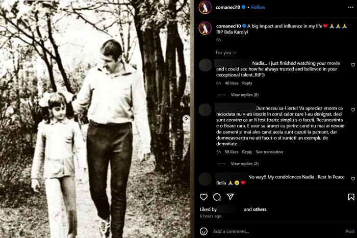 În urmă cu câteva ore, Nadia Comăneci a transmis un mesaj de condoleanțe: „Un mare impact şi o mare influenţă asupra vieţii mele. Odihnește-te în pace!”.