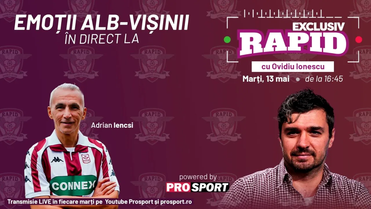 Vă așteptam astăzi, 13 mai, alături de legenda Adrian Iencsi, la „EXCLUSIV RAPID”, în direct pe YouTube – ProSport, de la ora 16:45!