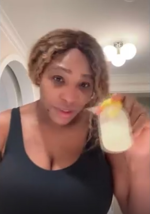 Având câteva arsuri solare sub ochi, ea și-a tamponat lapte matern pe față. Întregul proces a fost filmat și postat pe TikTok.