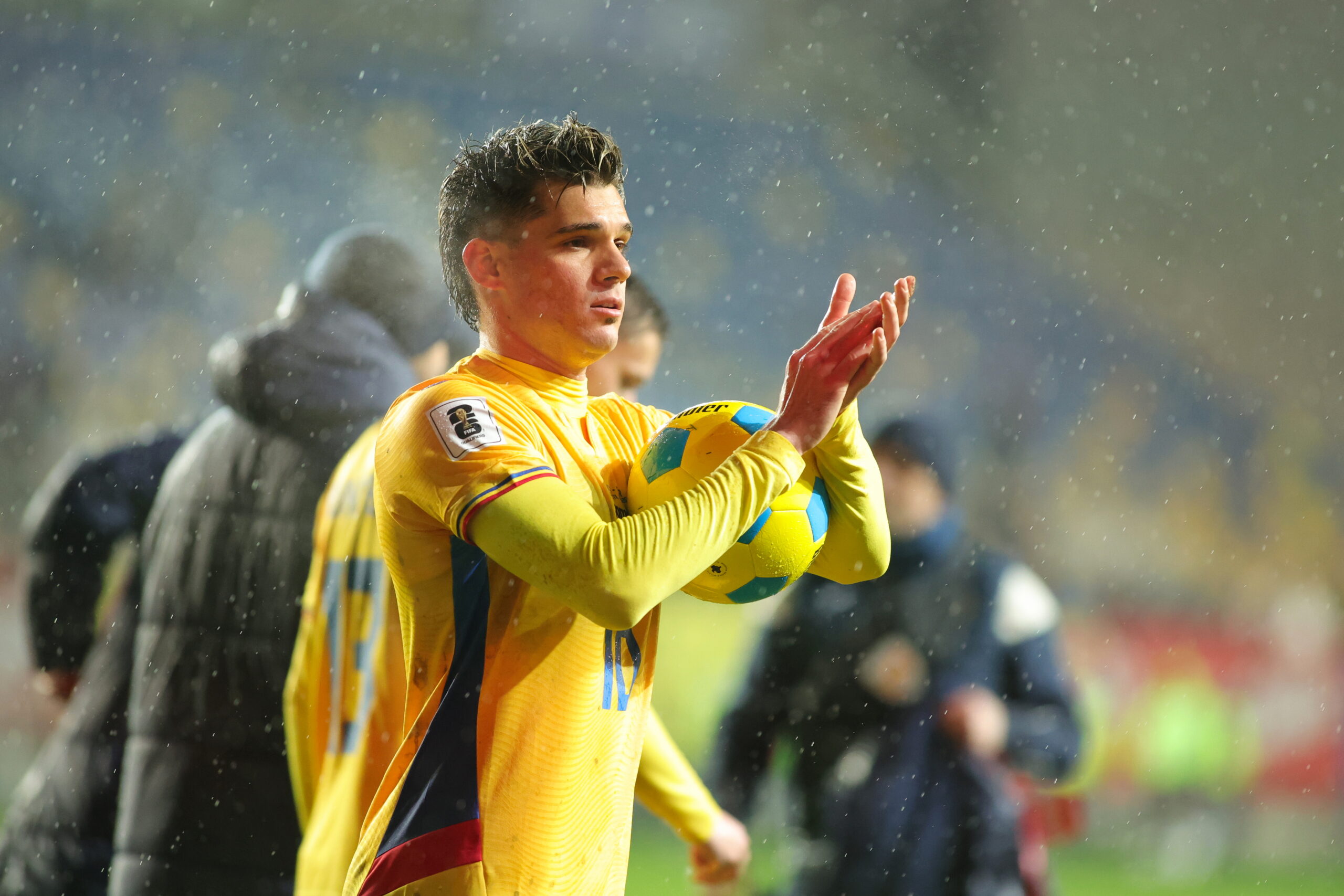 Meciul de fotbal dintre România și San Marino din preliminariile Campionatului Mondial 2026, disputat pe stadionul Ilie Oană din Ploiești, marți, 18 noiembrie 2025. În imagine: Ianis Hagi. SORIN PANA / MEDIAFAX FOTO