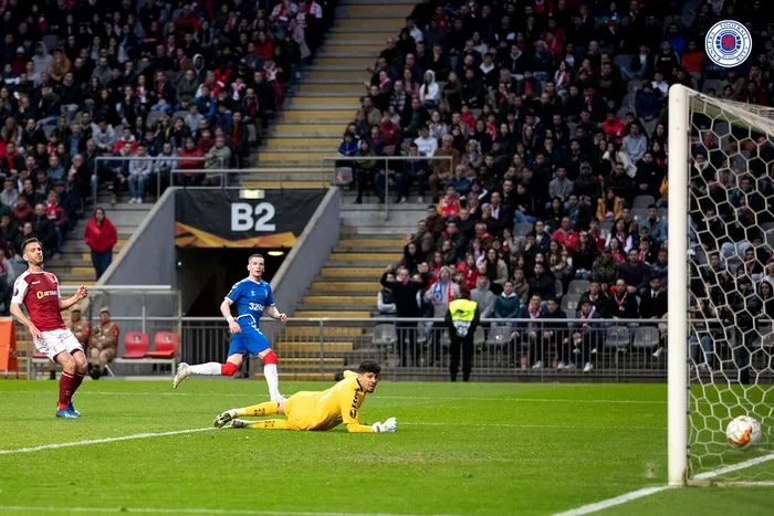 Ianis Hagi a fost cel care a obţinut o lovitură de pedeapsă pentru Rangers, în minutul 45+1, după ce a executat un corner, iar un apărător al celor de la Braga a comis un henţ în interiorul careului. Tot Hagi a fost cel desemnat să execute, însă a ratat şansa de a-şi aduce echipa în avantaj. A executat în forţă, însă portarul Matheus s-a aflat pe direcţia şutului şi a respins în corner.