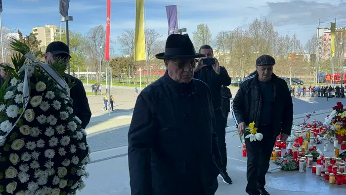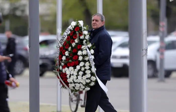 UPDATE 10:42: Daniel Pancu, antrenorul CFR Cluj și fostul elev al lui Lucescu, a ajuns la stadion. Acesta a adus o coroană de flori și a îngenuncheat în fața sciriului mentorului său.