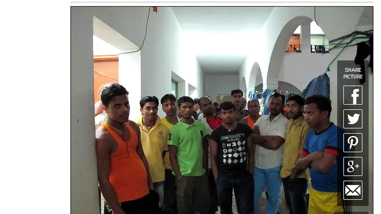 Angajații sunt „cazați” într-un hostel murdar din Doha și dorm pe saltele, îngrămădiți, în condiții de igienă precară.