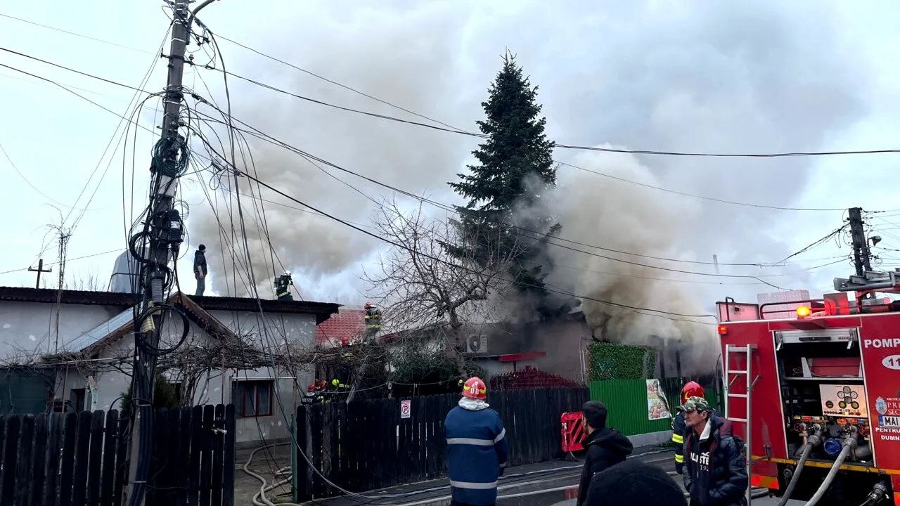 VIDEO: FOTO-VIDEO | Incendiu puternic izbucnit la o casă din Voluntari. Pompierii intervin cu mai multe autospeciale