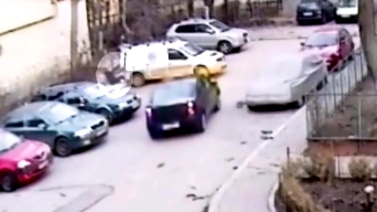 Momentul în care un șofer a zburat cu Mercedesul peste un sens giratoriu și alte două mașini. Ce s-a întâmplat