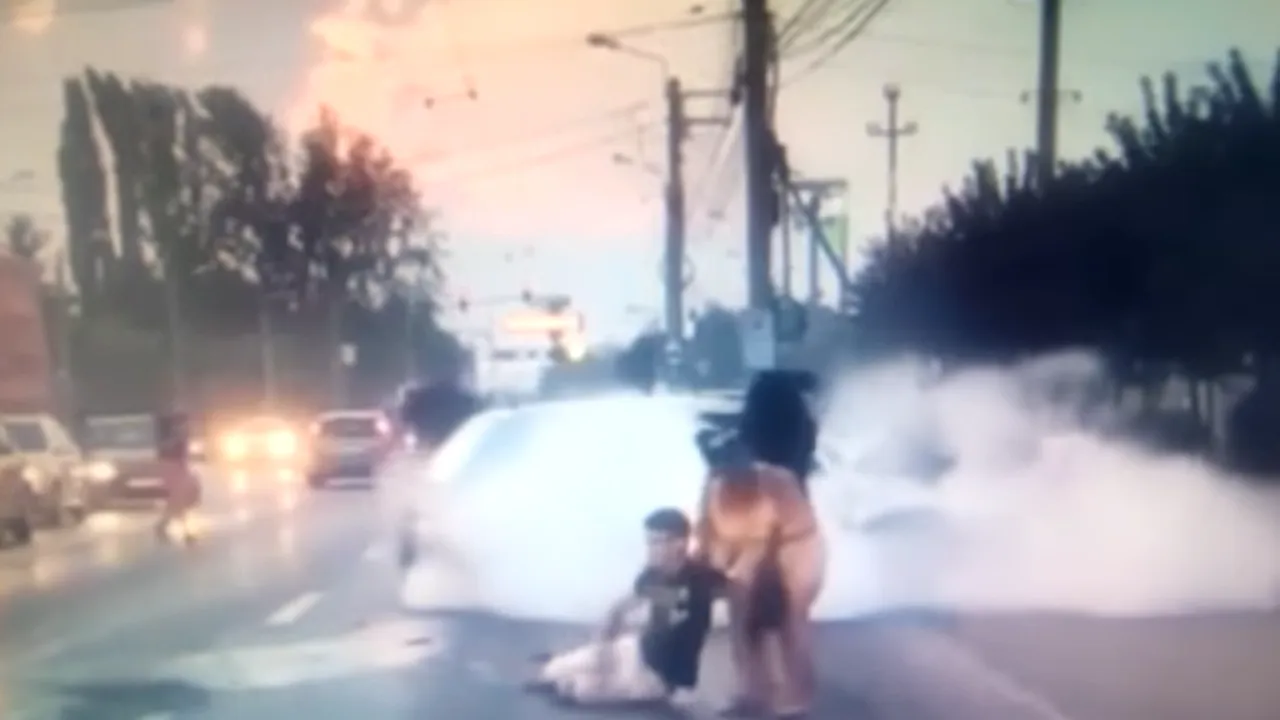 Dar tânărul a ajuns cu mașina într-un stâlp. Imaginile filmate de un martor au fost postate pe internet, potrivit celor de la TVR.