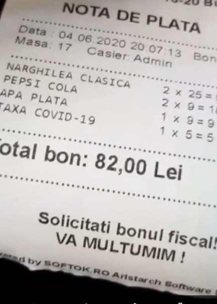 Cu toate acestea, patronii de terase și restaurante continuă să ignore legile statului și își suprataxează consumatorii după bunul plac. Împrumutând modelul țărilor din Occident, cârciumarii români au introdus în nota de plată „taxa Covid-19”, practicată și în multe state americane.