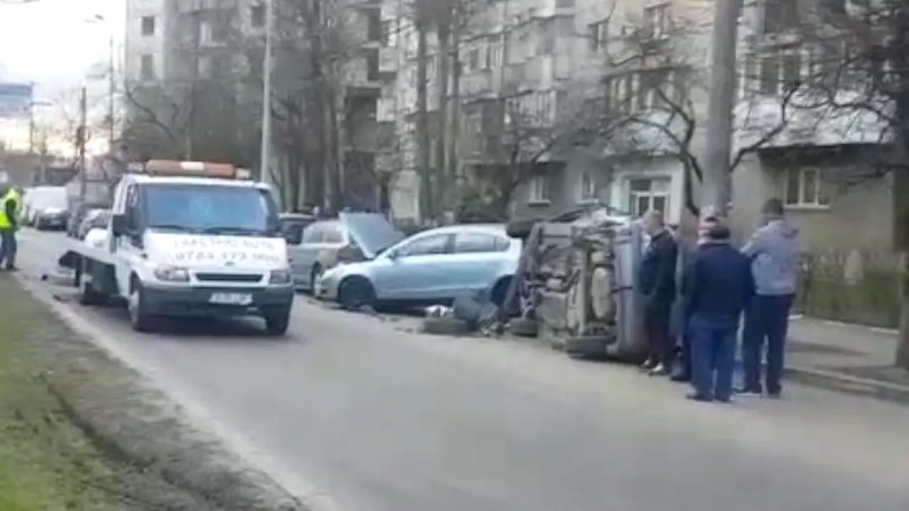 „Autoturismul condus de un cetățean turc a pierdut controlul asupra direcției de mers și a lovit 8 autoturisme parcate. Unul dintre vehicule s-a răsturnat pe o parte”, arată polițiștii.