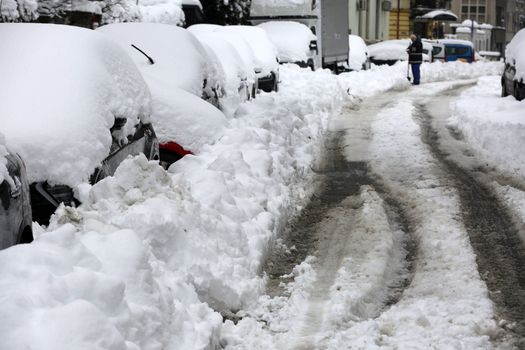 Așa apare zăpada aceea neagră. Nu maro de la praf, în mod special, ci neagră de la particulele strânse în asfalt.