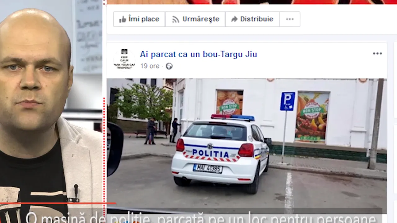 Mașina Poliției, aflată pe un loc de parcare destinat persoanelor cu handicap din apropierea Unității de Primiri Urgențe Târgu-Jiu, a fost fotografiată de un trecător și a fost postată, miercuri, pe o pagină de Facebook, unde apar poze cu autoturisme parcate pe trotuar sau staționate ilegal.