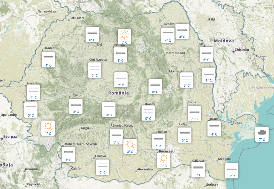 În dimineața zilei de joi, 11 decembrie 2025, în mai multe localități din România au fost 0 grade Celsius – Baia Mare, Deva, Sibiu, Brașov Ploiești, Buzău și București.