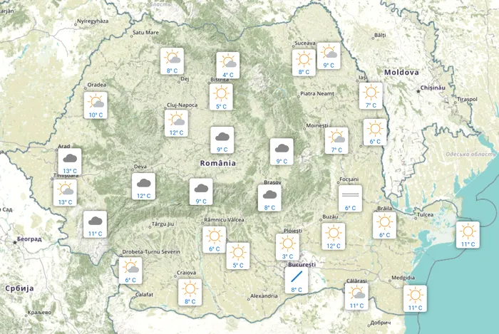 La primele ore ale dimineții, meteorologii nu au transmis nicio avertizare nowcasting pentru România, iar toate regiunile din țară erau în zona meteo „verde”.