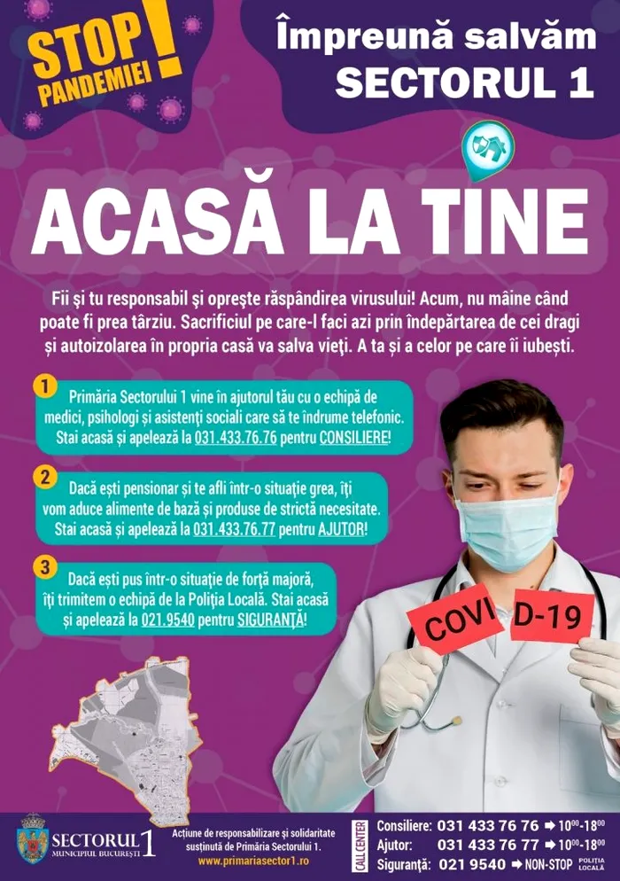 „Din păcate, nu am reușit să intrăm în contact cu restul de 25.000 de persoane vârstnice care ar putea avea, la rândul lor, nevoie de ajutor. Iată de ce facem apel la solidaritatea voastră – tineri și adulți din Sectorul 1 – care ați putea să ne sprijiniți în demersul nostru de identificare a persoanelor în vârstă. Fie că transmiteți mesajul nostru către persoanele vârstnice, fie că ne transmiteți nouă datele acestora, în ambele variante implicarea voastră este deosebit de importantă.